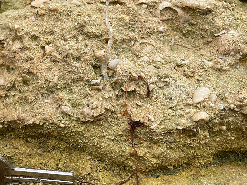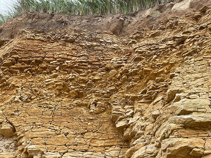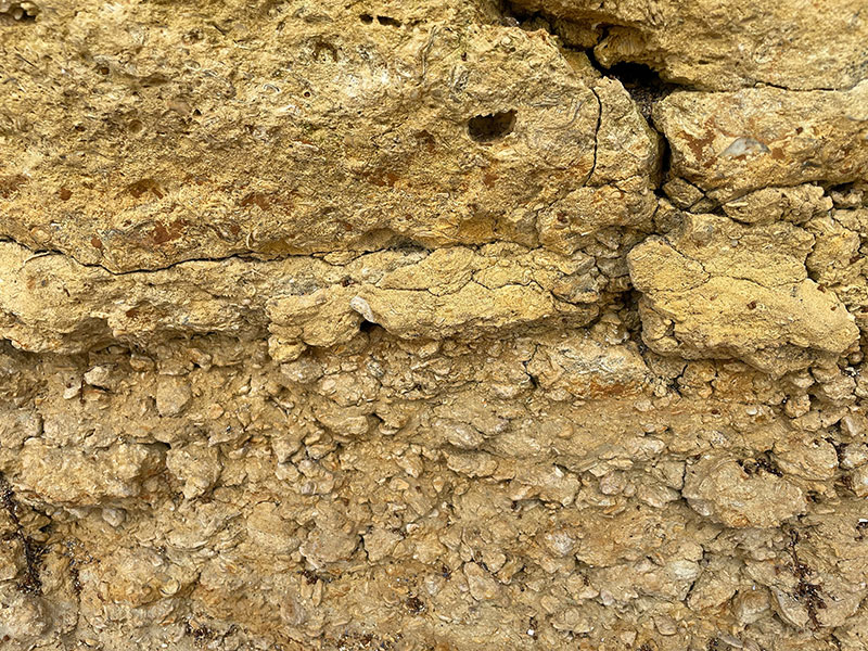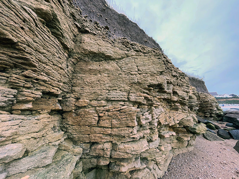 Litages obliques dans le Calcaire de Langrune caractéristiques de courants marins lors de la mise en place de ces sables carbonatés
