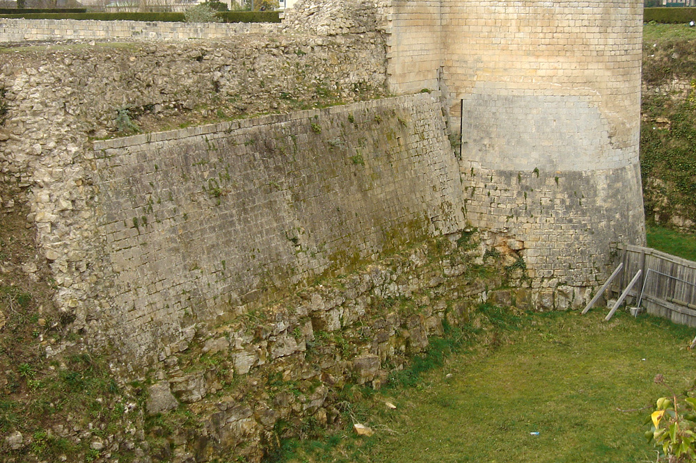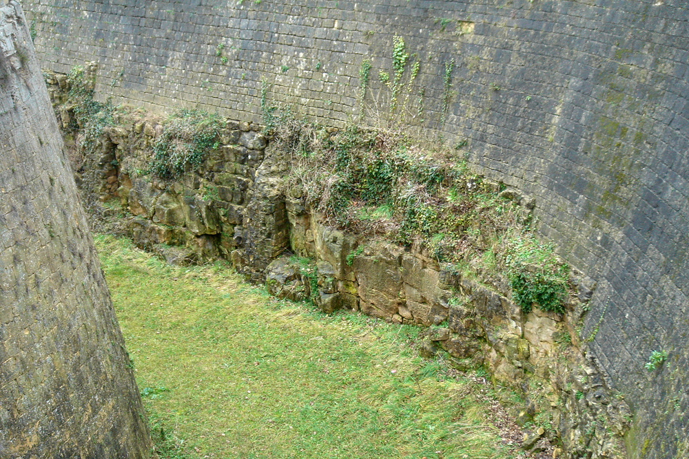 Affleurement de Calcaire de Caen dans le fossé du donjon |
