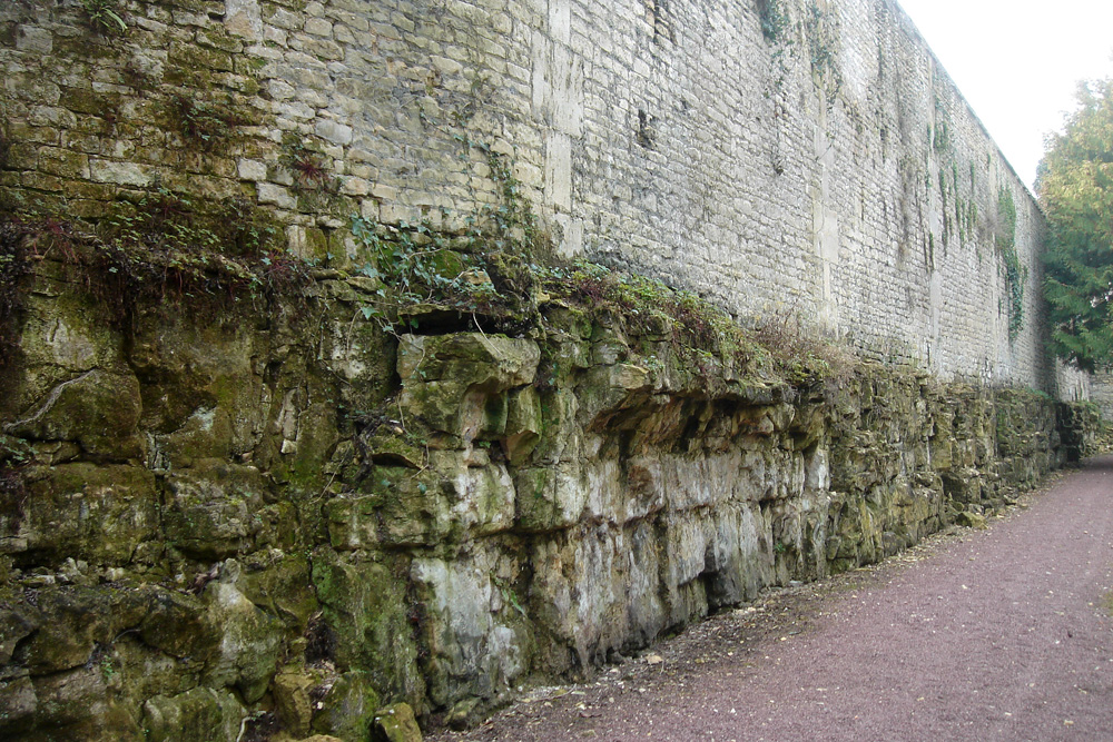 Cet affleurement de Calcaire de Caen est situé rue d’Auge, près de la Chapelle Ste-Paix, à la jonction avec la rue de Grentheville.