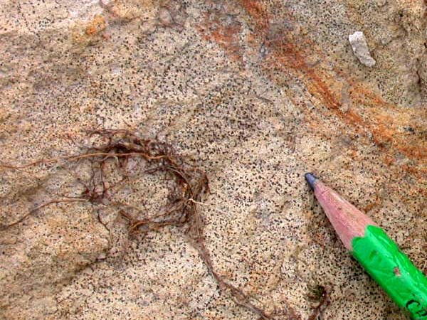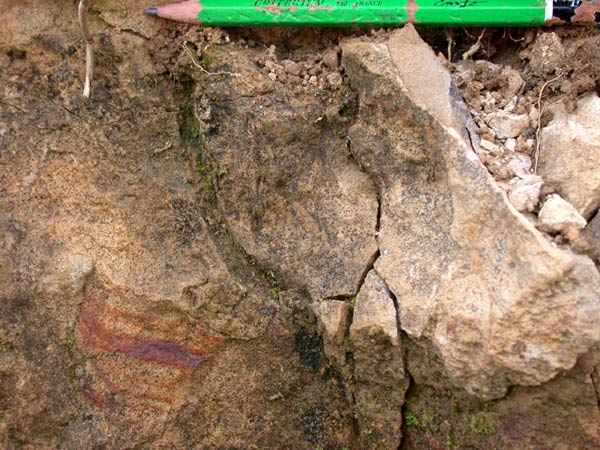 traversé par de nombreux terriers verticaux flexueux, bien conservés.