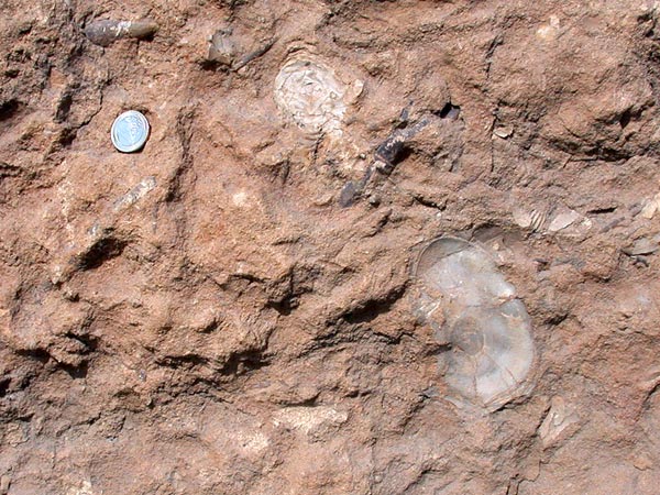 (gryphées ?) à la surface d'une passée plus