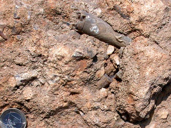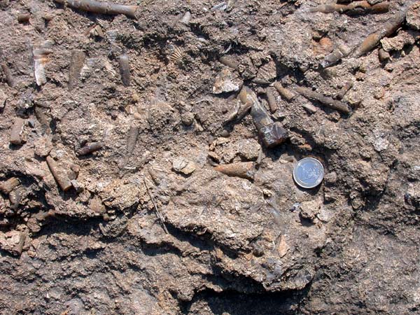 Au milieu de bioclastes de grande taille, un rostre