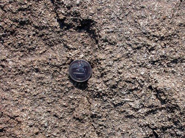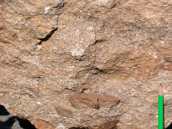un sable grossier. Des fragments usés d'articles de crinoïdes