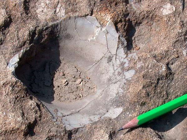 boueuse et bioturbée. Sur la valve plate vue de dessus,