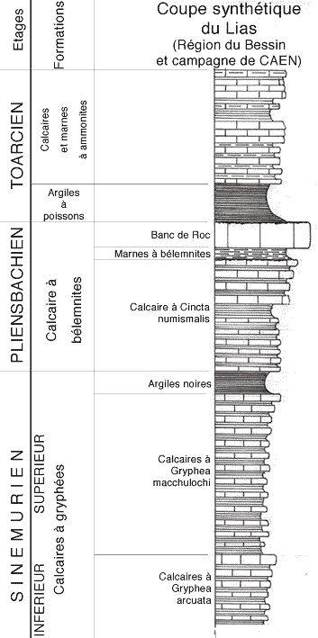 (présence d'oolithes ferrugineuses, d'ammonites à