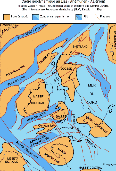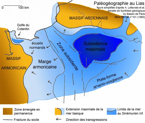 Au Lias, la bordure NE du Massif armoricain est progressivement envahie