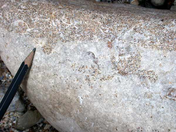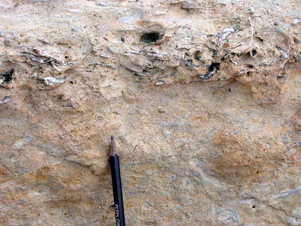 et bioclastes au sommet d'un banc calcaréo-gréseux du