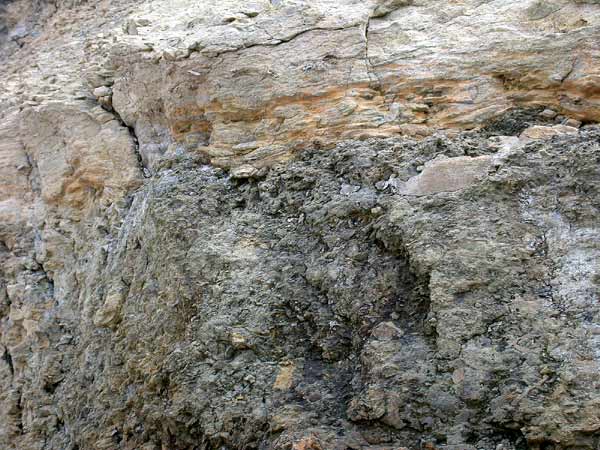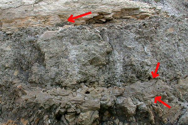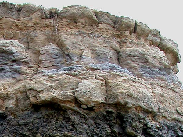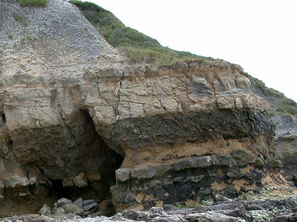 reposent sur une surface d'érosion qui tronque le banc sombre sous-jacent. |
