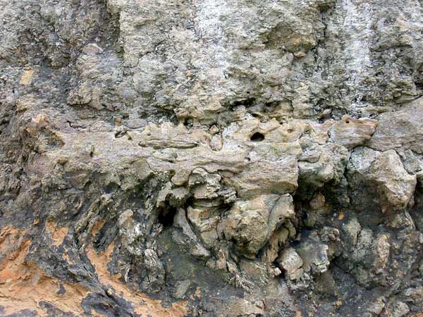 et lui donnent un aspect lacuneux et chaotique. Il contient quelques