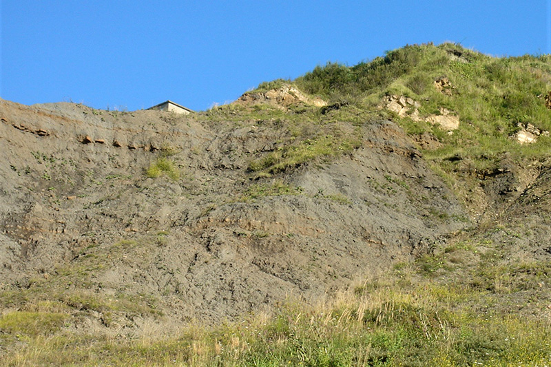 Les calcaires du Coral Rag affleurent à l’Ouest de Villers-sur-Mer, dans la corniche claire qui couronne le sommet de la falaise marneuse grise. La corniche n'est pas accessible. Au-dessus de celle-ci, la pente herbue correspond à la série crétacée constituée par les sables glauconieux de l’Albien et la craie cénomanienne. Plus à l’Est, le sommet de la série jurassique est souvent masqué par des glissements et des panneaux de craie. |