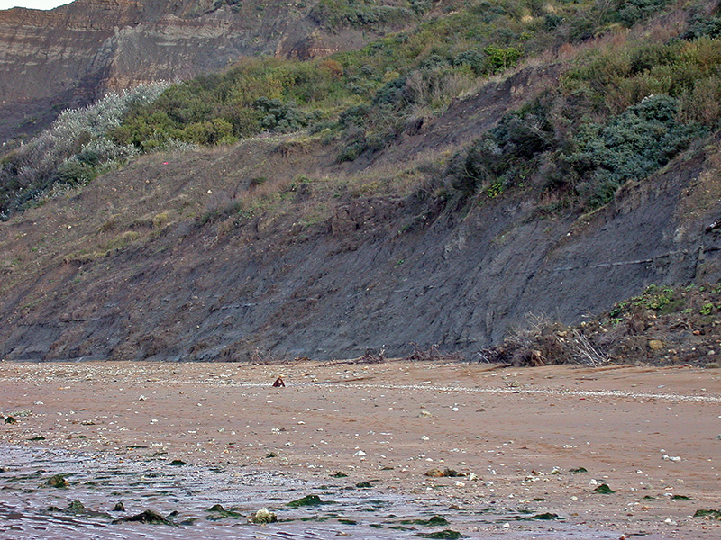 Affleurement d’une série marneuse au pied des falaises des Vaches Noires, à l'Est d'Houlgate