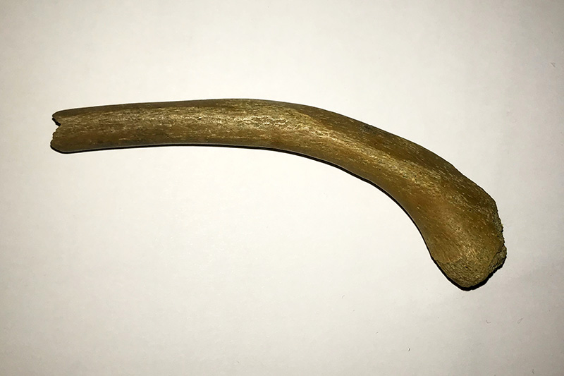 Os de vertébré, probablement une côte de reptile, récolté dans le haut de plage à la base de la falaise des Vaches noires