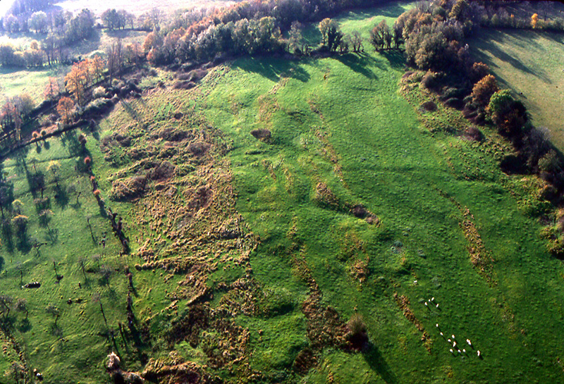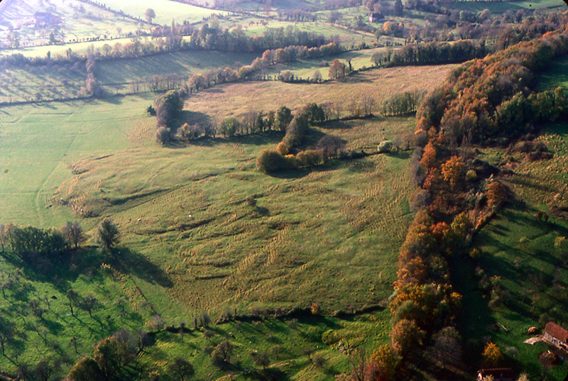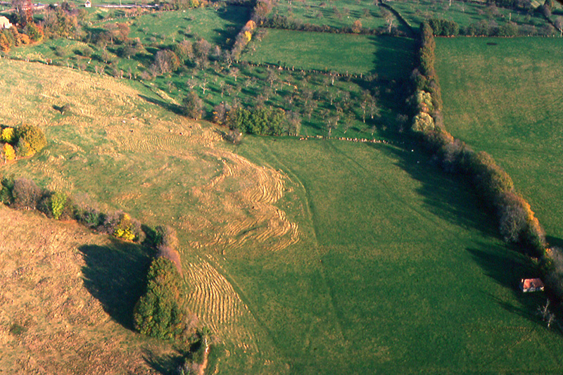 Solifluxion sur un versant du Pays d'Auge, environs de Beaumont-en-Auge. Cette solifluxion est héritée de la dernière glaciation. Elle est due à une liquéfaction superficielle des marnes jurassiques altérées. |