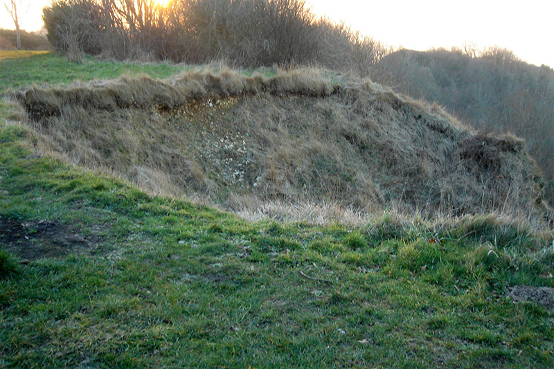 Sommet de la niche d’arrachement d’un des nombreux glissements affectant la craie cénomanienne au sommet des falaises des Vaches Noires, à Auberville.
