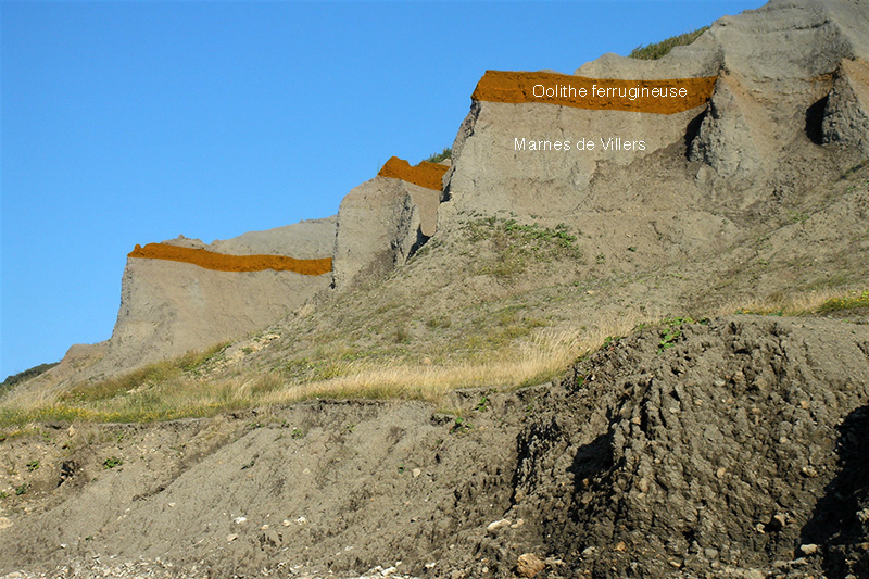 Située à mi-hauteur des falaises des Vaches Noires, la Formation de l'Oolithe ferrugineuse de Villers surmonte l’épaisse formation argileuse des Marnes de Villers ; elle est recouverte par la Formation de Argiles à Lopha. Ces formations appartiennent toutes les trois à l’Oxfordien inférieur. L'Oolithe ferrugineuse de Villers est composée d’une alternance de marnes et de calcaires argileux bioclastiques où sont dispersées de nombreuses oolithes ferrugineuses qui lui donnent une couleur rouille. La bioturbation intense, l’abondance des fossiles et des oolithes ferrugineuses témoignent d’un ralentissement de la sédimentation dans ce niveau condensé d’une épaisseur totale réduite à 2 mètres.
