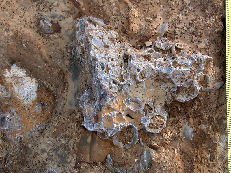 des bioclastes variés, parmi lesquels des bivalves de grande taille. |
