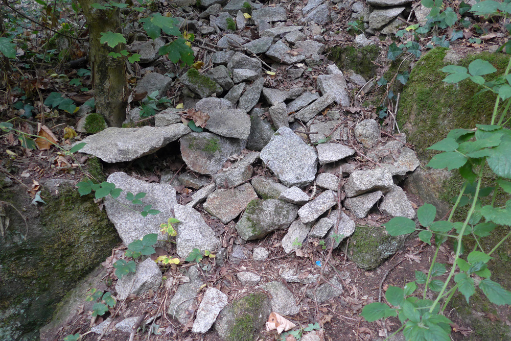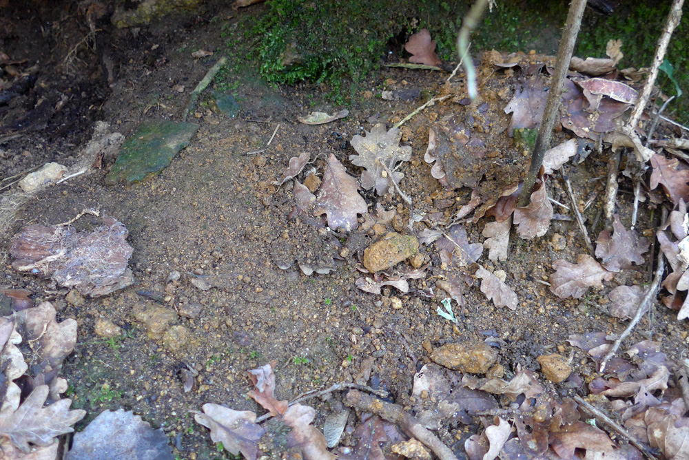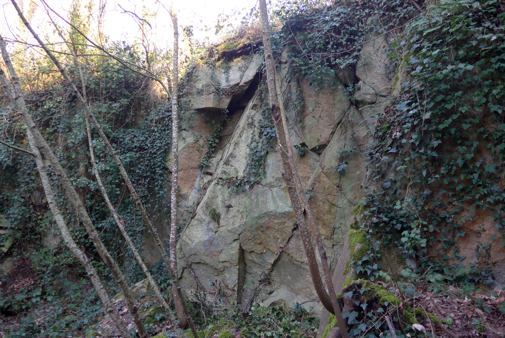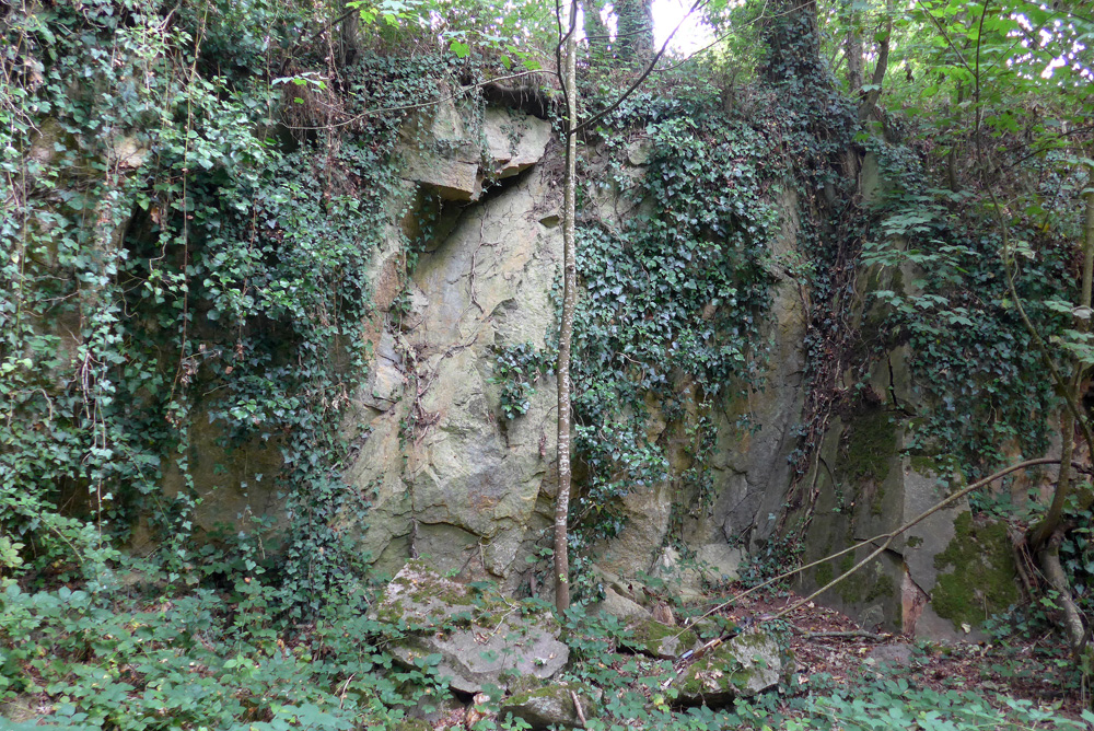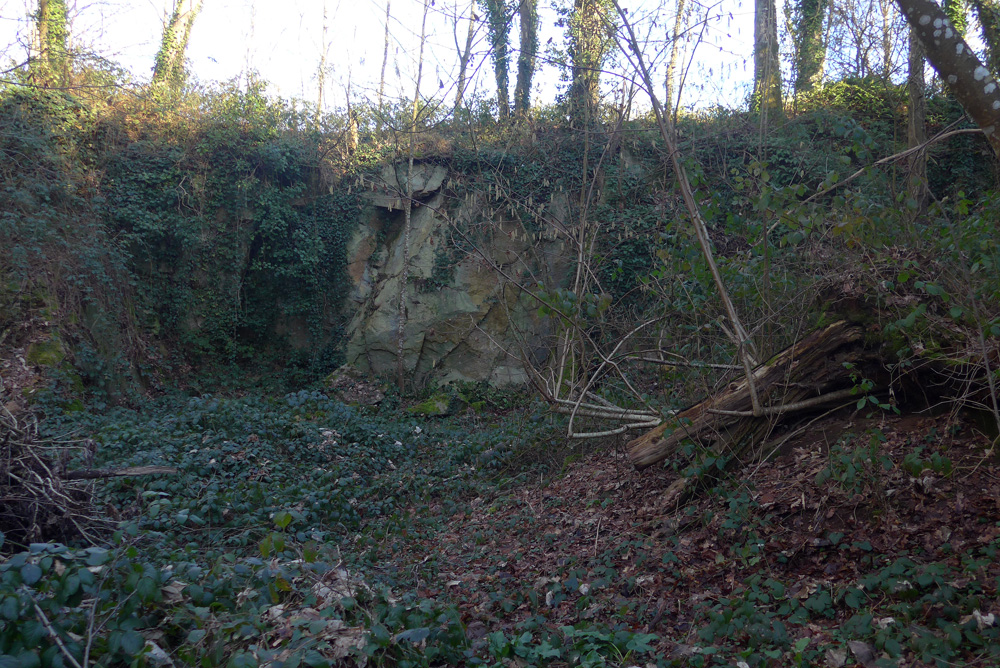 Le front de taille, peu élevé, est en partie recouvert par le lierre. L’espace est relativement dégagé devant le front de taille sud. Quelques ronces basses couvrent le sol. |