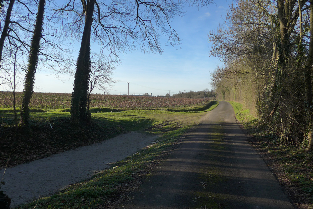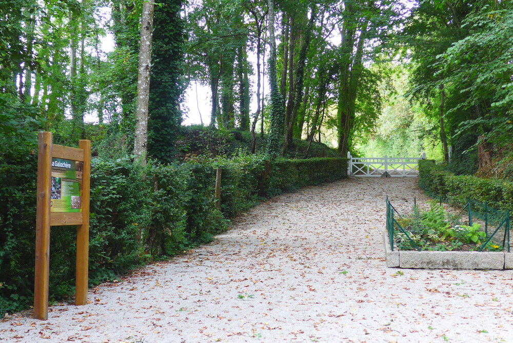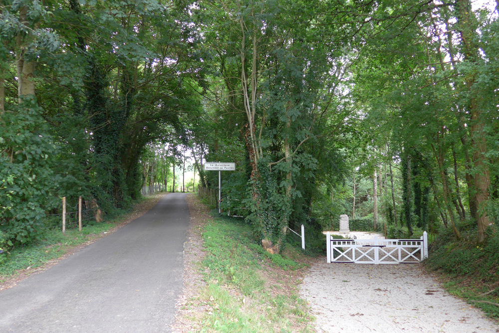 Le site depuis la route communale qui mène à Condé-sur-Sarthe. Le site est fermé par une barrière en bois mais un passage reste libre pour les piétons. |