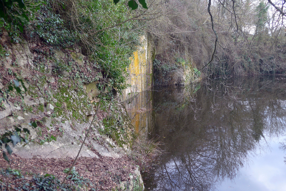Ancien front de taille vertical, orienté NO-SE, dominant le secteur noyé |