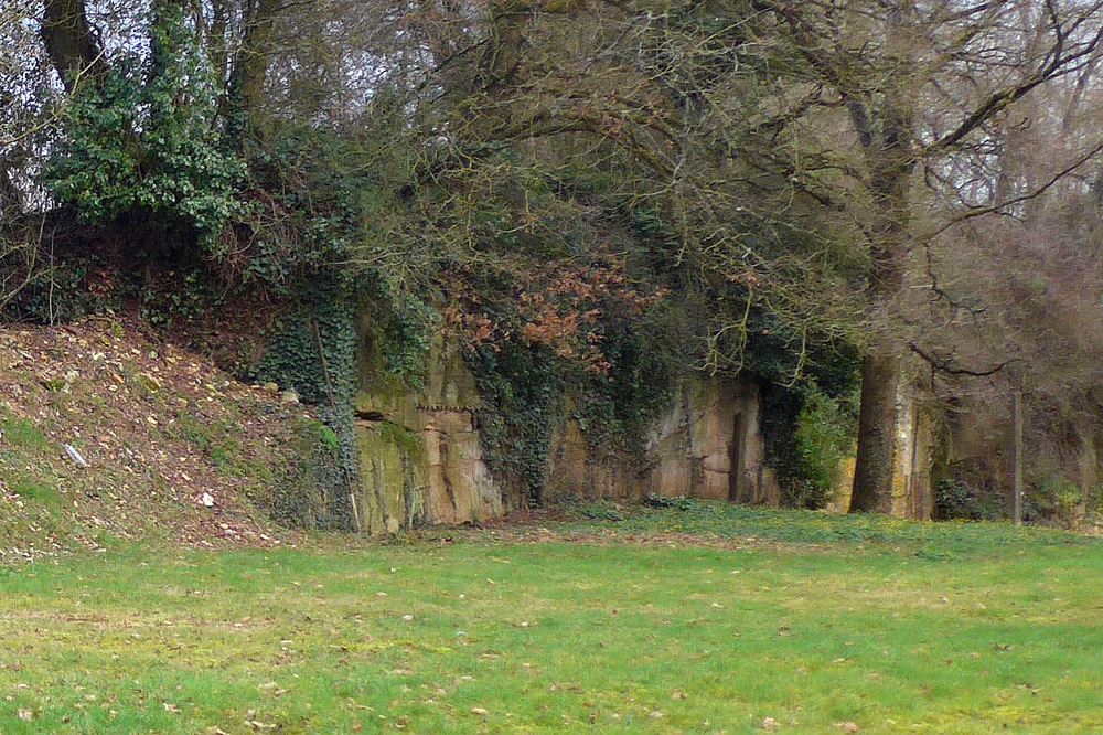 Le front de taille vertical noyé se prolonge au Nord-Ouest dans la partie remblayée où il devient accessible.