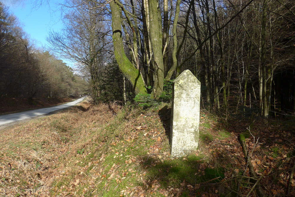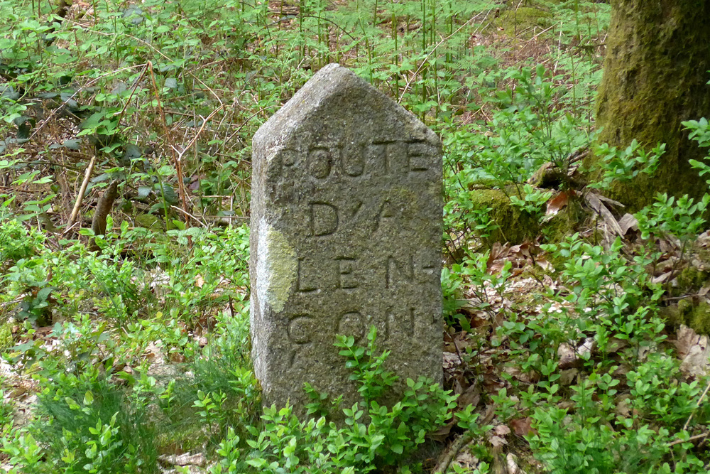 Bornes de signalisation en leucogranite dans la forêt d’Ecouves (carrefour de la Branloire)