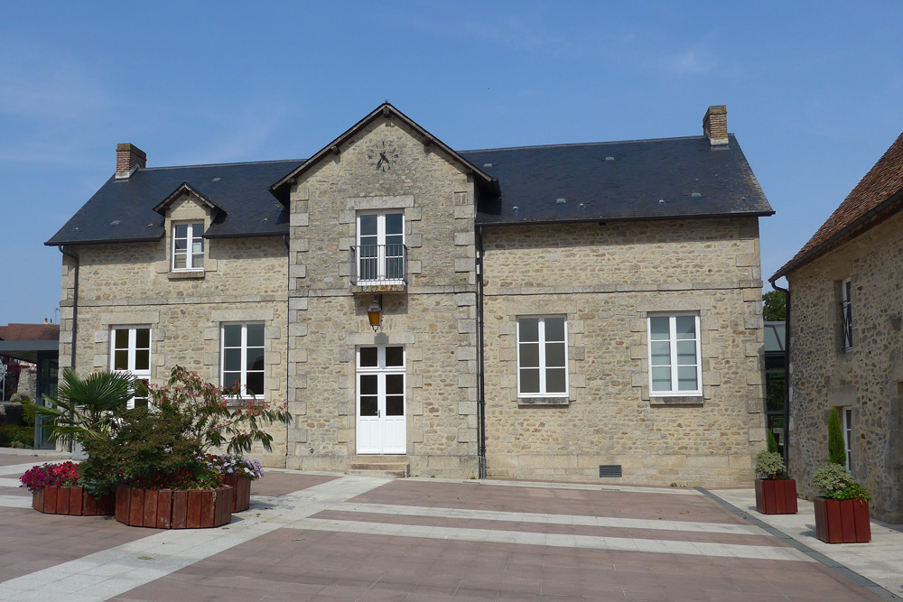 Mairie de Condé-sur-Sartre construite presque entièrement en granite