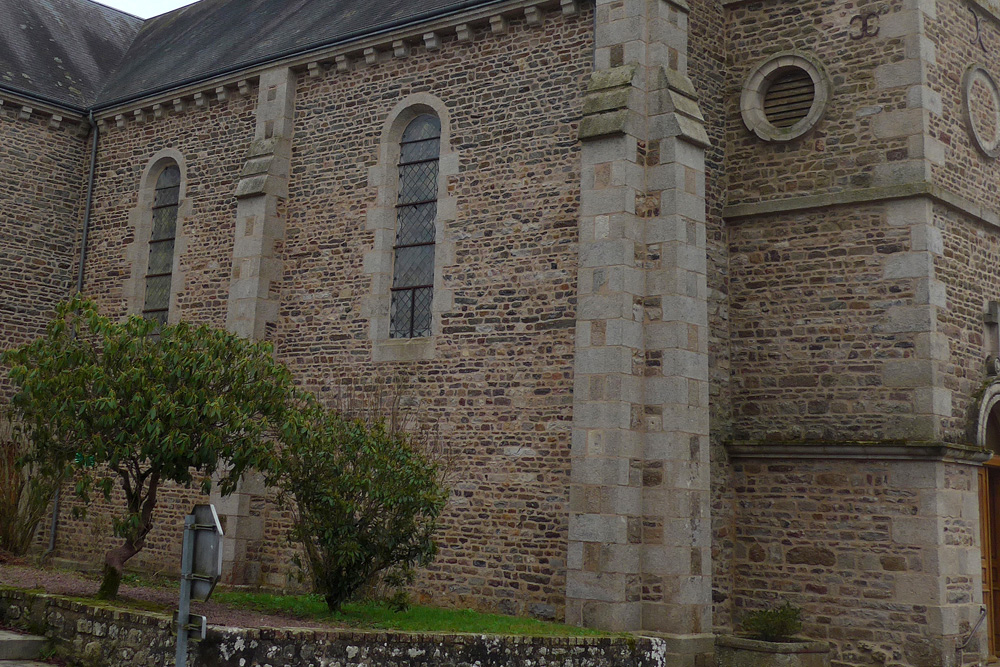 Dans les églises de la région, le leucogranite d’Alençon est très souvent utilisé comme pierre d’appareil dans les contreforts, les chaînages d’angle verticaux et autour des fenêtres. |