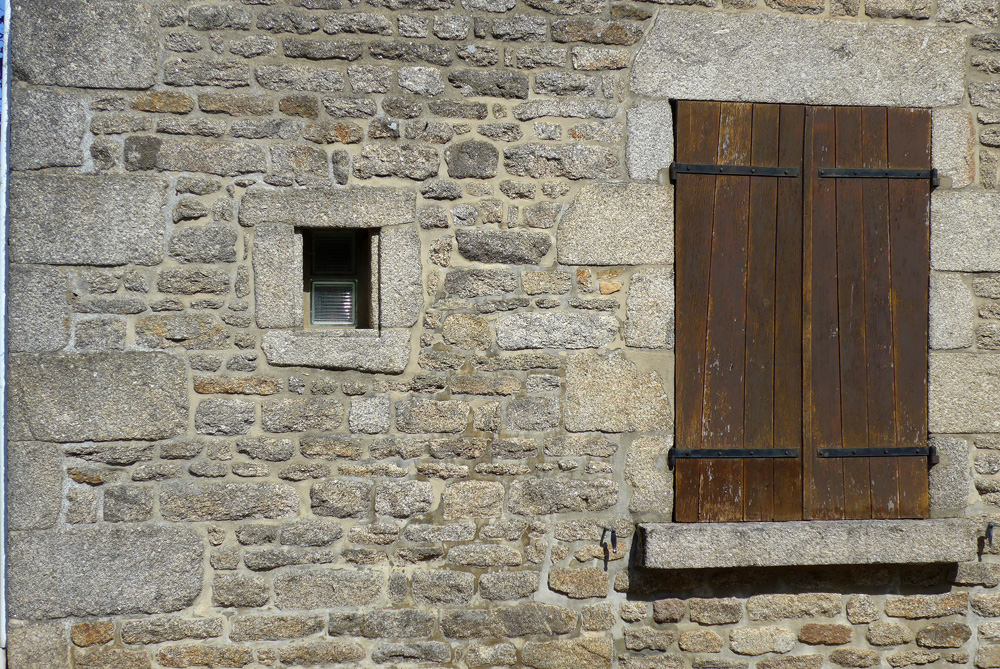 Pierres d’appareil en leucogranite autour des portes et fenêtres du bâti traditionnel |