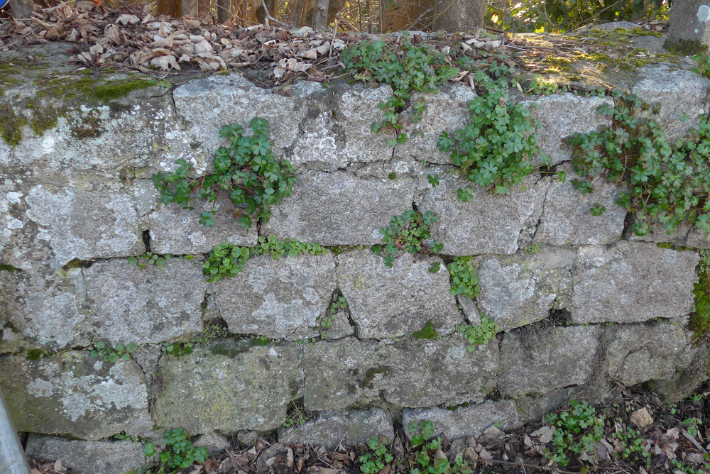Mur en granite bordant le front de taille principal de la carrière de la Tour, rue de Beauséjour |