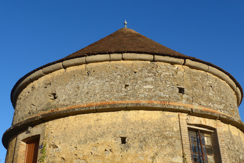 Au Sud-Est de la carrière de la Tour, une tour présente un toit supporté par une corniche circulaire en granite.
