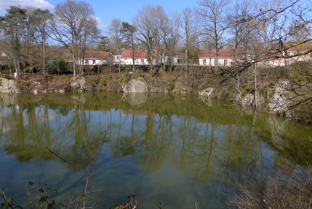Dans la partie sud, un talus planté d’arbres offre un point de vue sur la carrière. On y accède depuis la rue de l’Eglise : à l’Est de la zone pavillonnaire, suivre la limite d’un vaste champ qui descend vers le Cuissai, continuer sur une centaine de mètres et, au-delà d’une zone embroussaillée, gravir le talus. |