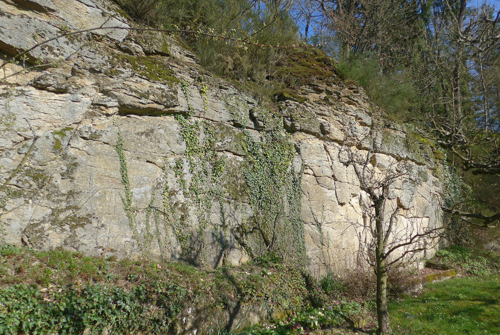 Front de taille situé dans un jardin privé, rue du Château d’eau, de l’autre côté de la carrière de la Grenouillère. Il entame la butte dans laquelle a été creusée la grande carrière de la Jardinière. |
