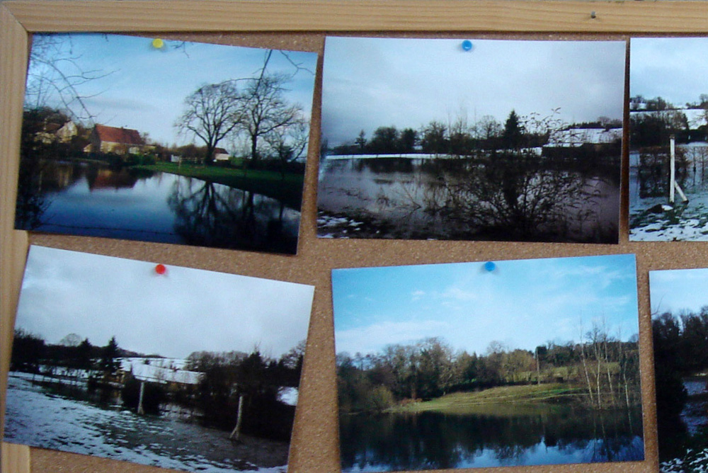 Photographies prises par les propriétaires montrant les inondations survenant lors de périodes très pluvieuses. La perte n’absorbe plus la totalité de l’eau et l’entonnoir se remplit d’eau. A survoler
