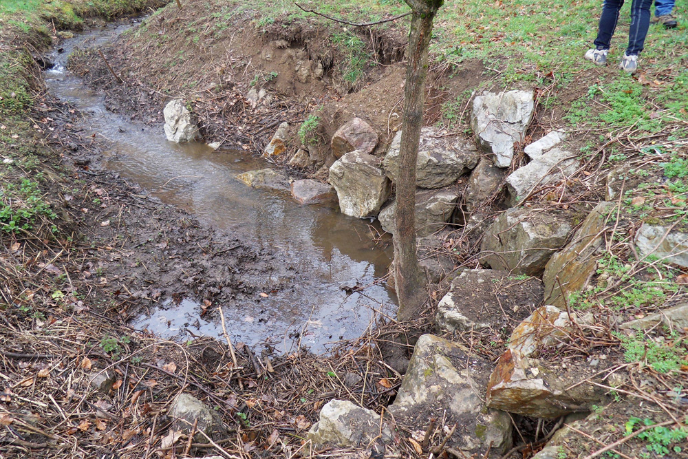Les berges de la perte sont consolidées par de gros blocs