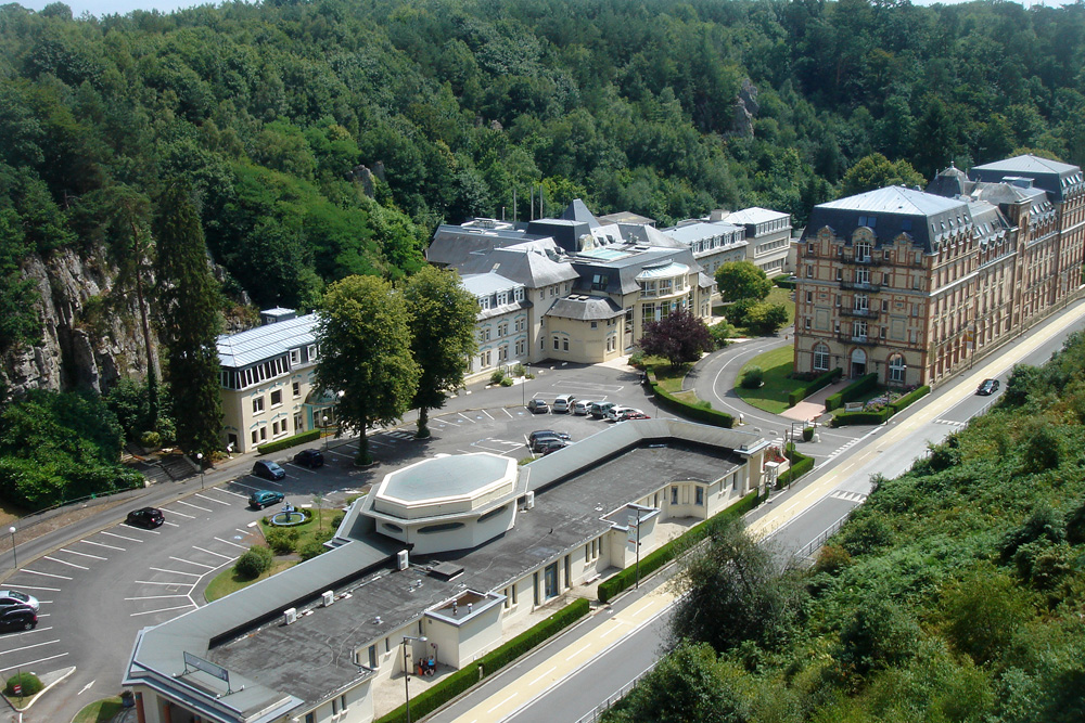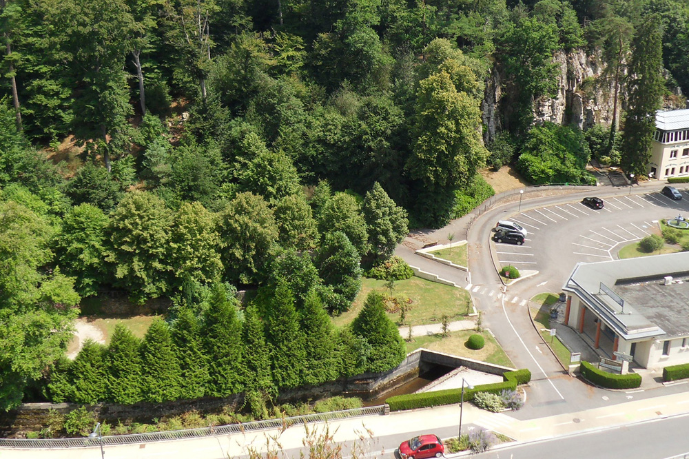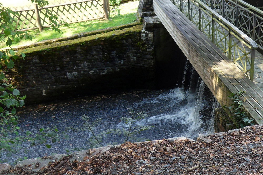 Au niveau des Thermes, la Vée passe sous les installations thermales ; elle réapparaît à l’aval 250 mètres plus loin. |