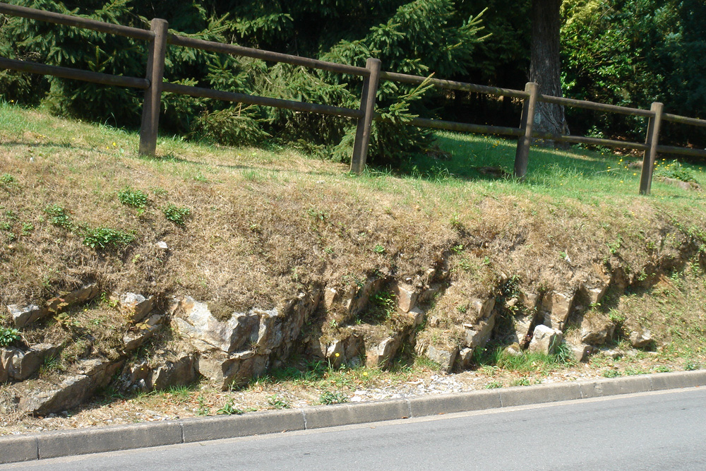 Affleurement en bordure de la rue des Pierres Plates en allant vers les Thermes (vers l’Est) |