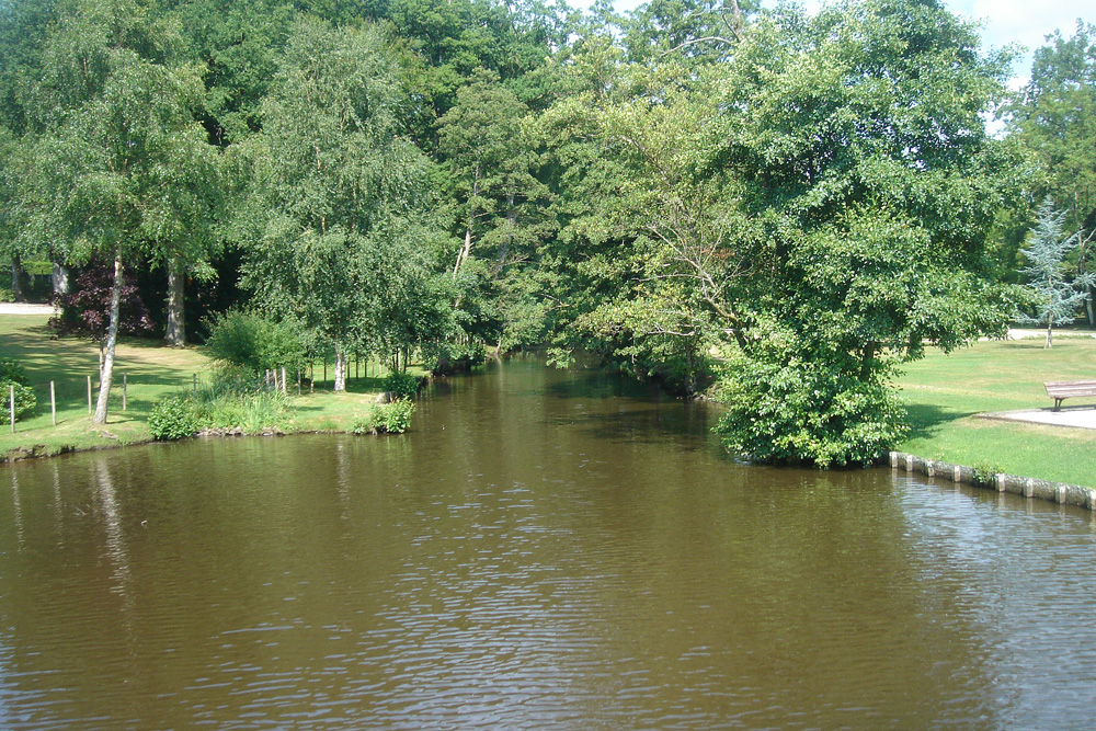 Le lac du casino est creusé dans les Schistes du Pissot. La Vée débouche dans le lac à droite du Casino au niveau de la passerelle. |