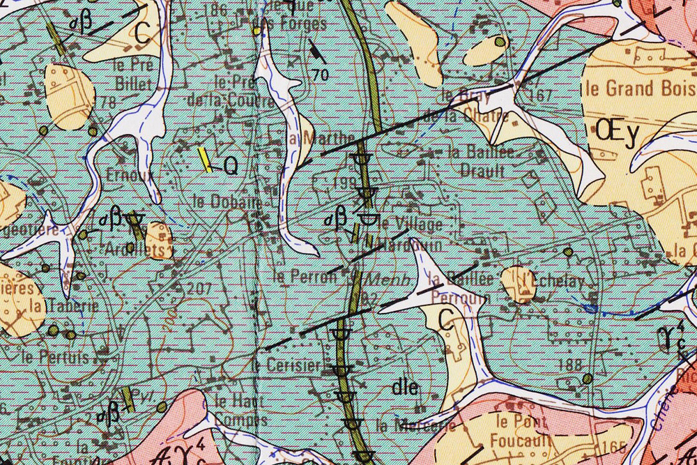 Extrait de la carte géologique à 1/50 000, feuille de Landivy (BRGM - Orléans)