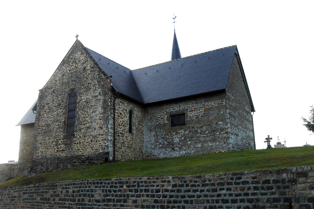 La vieille église de Barenton est construite sur une petite crête topographique qui correspond à l’extrémité nord du filon de dolérite.