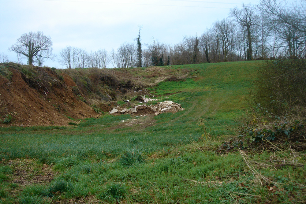 Cette dépression est le témoin d’une exploitation ancienne des argiles d’altération de la dolérite, riches en calcium, utilisées pour le chaulage des terres. Cette marnière est maintenant cultivée et en cours de comblement. |