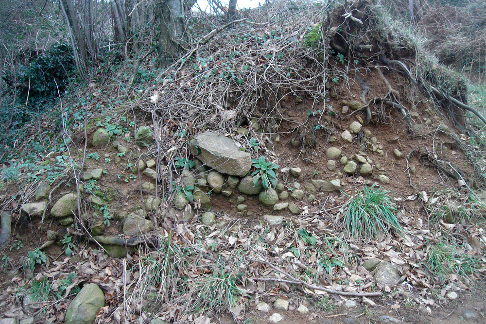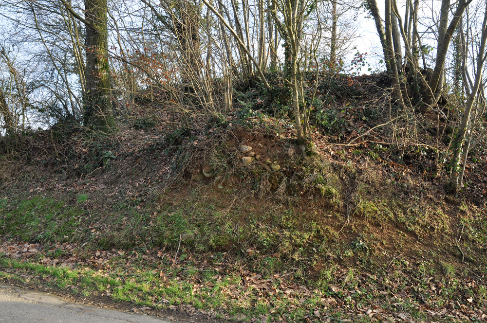 Boules de dolérite dans le talus de la route, au bord de la marnière de la Genillière |
