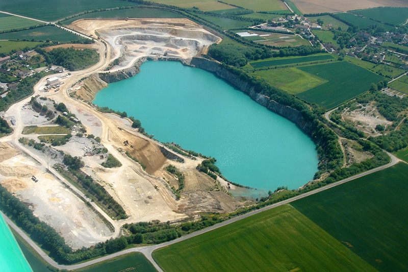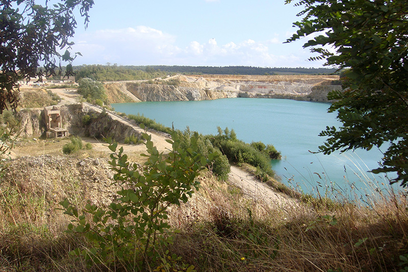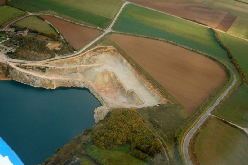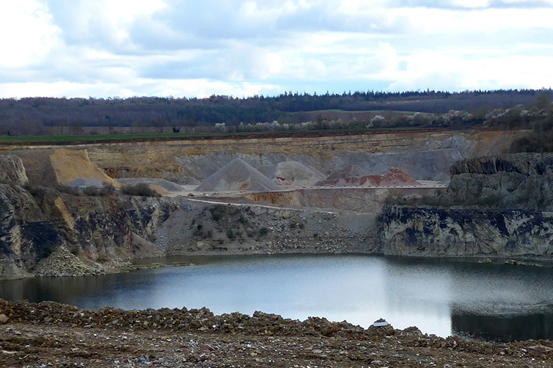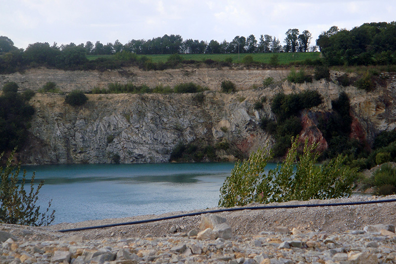 La couverture de calcaires jurassiques doit être décapée pour permettre l’exploitation des quartzites sous-jacents. Très purs et d’une grande dureté, les quartzites fournissent des granulats destinés aux travaux publics.