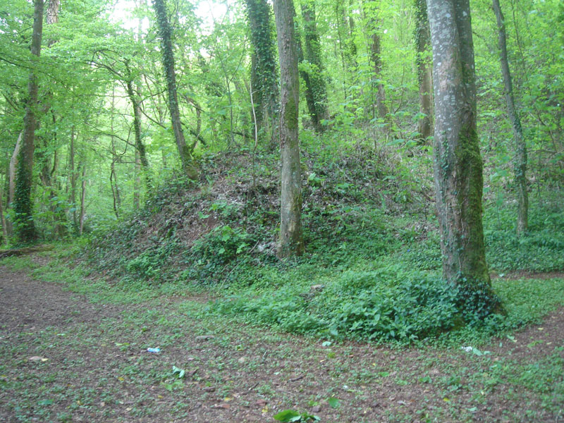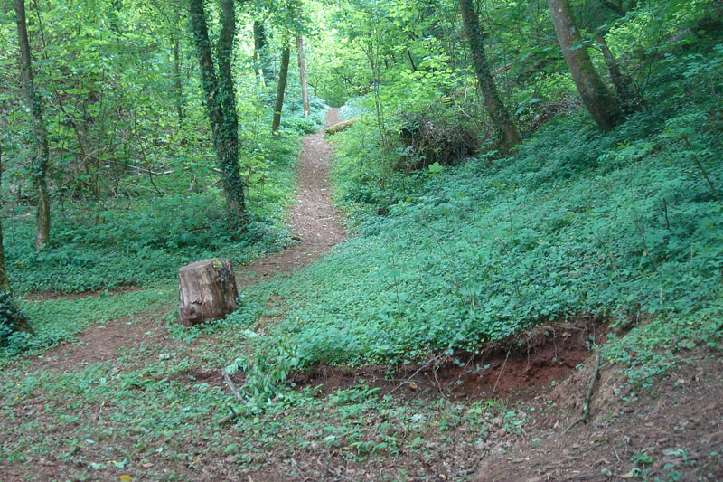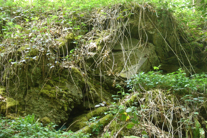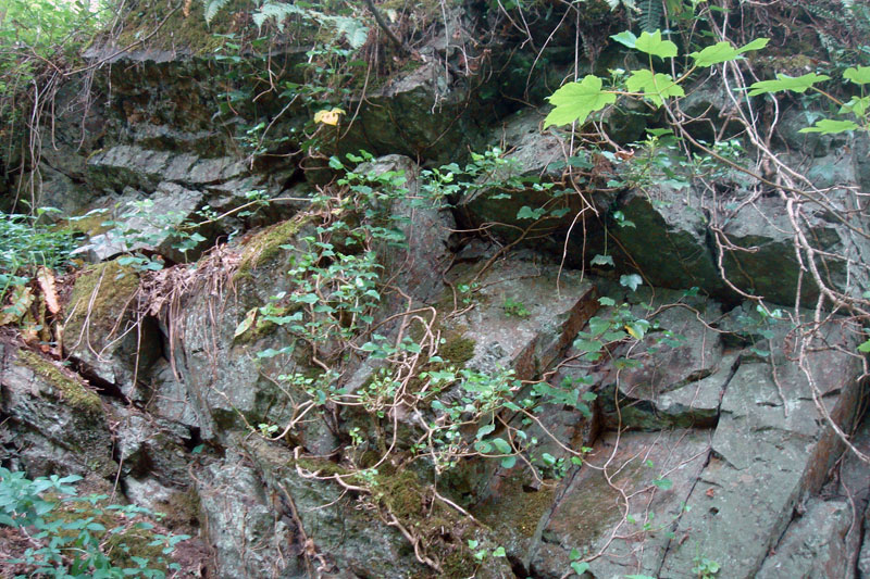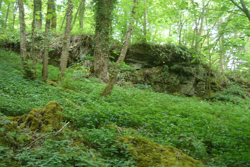 A la base du coteau, des petits terrils sont les témoins d’une exploitation ancienne du minerai. Ils sont maintenant colonisés par le lierre, les fougères et les arbres. |