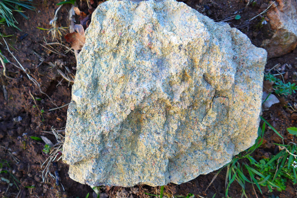 Echantillon d’ignimbrite porphyrique prélevé sur le talus