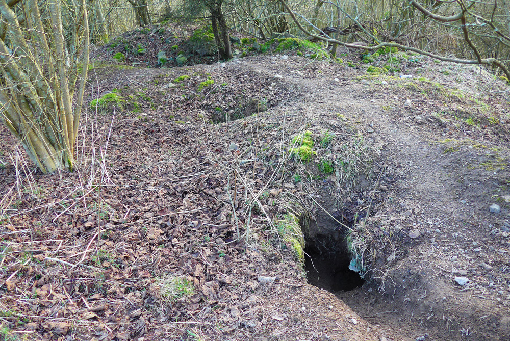 Ce terrier de blaireau a été creusé dans les ignimbrites voisines des brèches d’intrusion en rive nord du ruisseau de Roche-Elie.