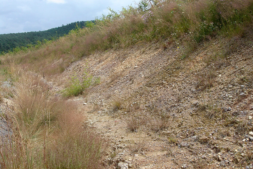 En dehors des périodes d’entretien des fossés, l’affleurement du conglomérat est plus ou moins masqué par la végétation qui s’y développe rapidement.