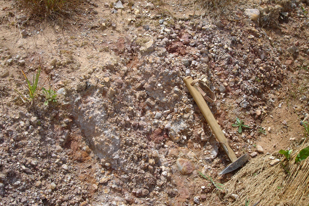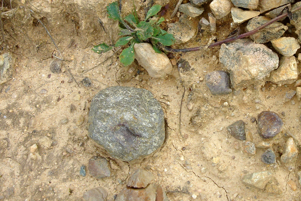 Le conglomérat affleure mieux de l’autre côté du carrefour, en allant vers l’Est, en direction d’Alençon.