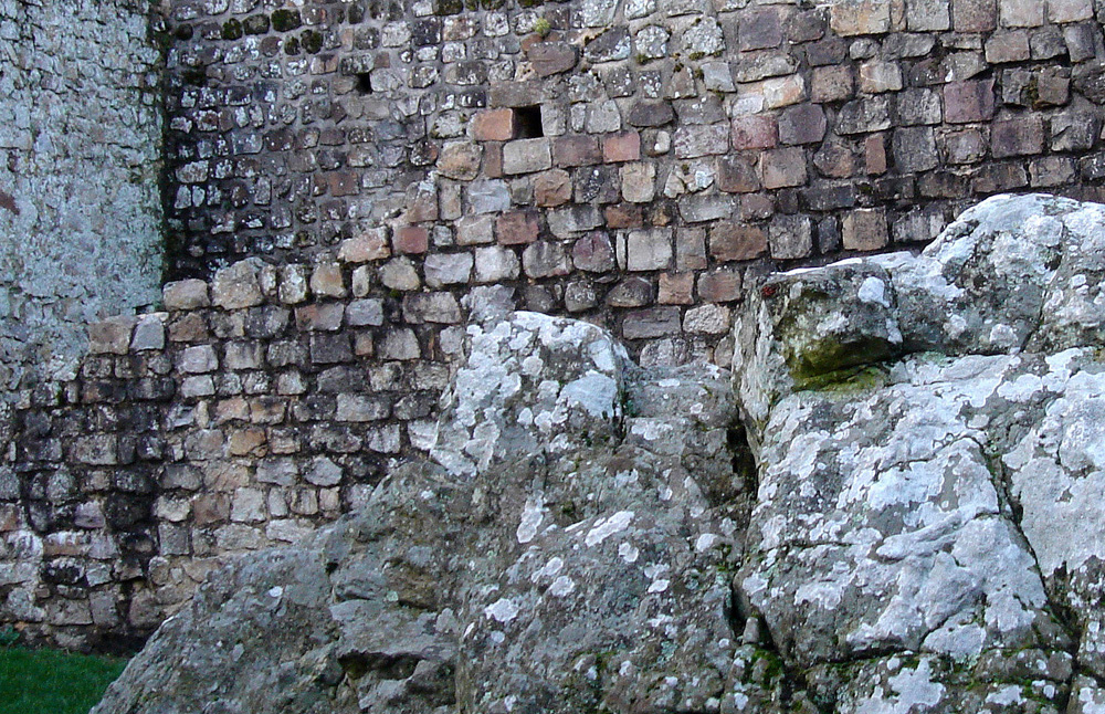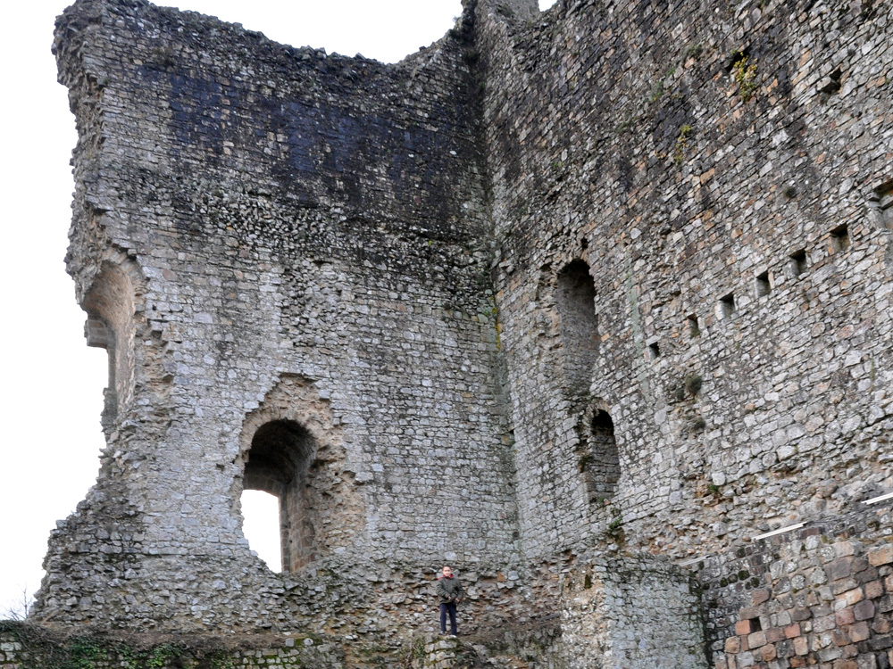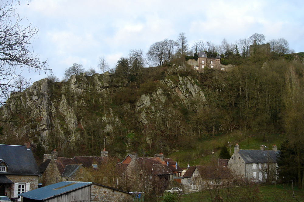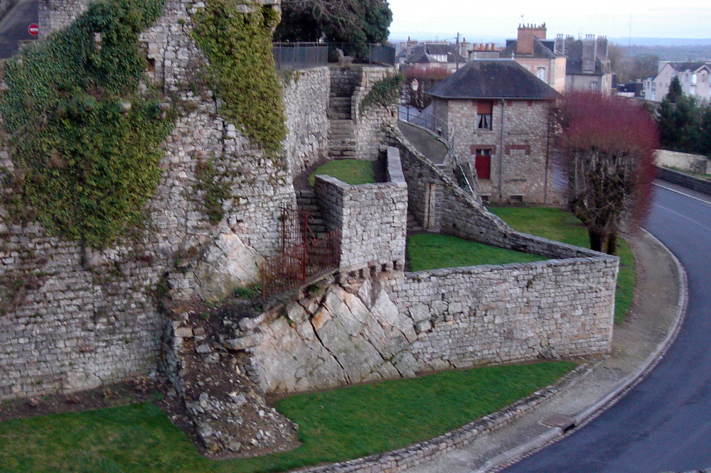 Les murs du donjon et des remparts ont été construits avec les quartzites du Grès armoricain. Le donjon, édifié au 12e siècle par Henri 1er Beauclerc (fils de Guillaume le Conquérant), a été détruit en 1608 sous l’ordre de Sully. Il ne subsiste que deux grands pans de murailles constitués de moellons de quartzite taillés assez grossièrement. |