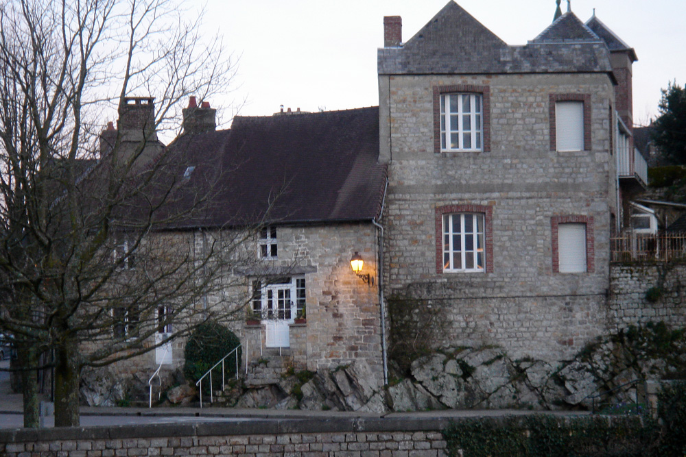 Le Grès armoricain sert de soubassement à des maisons de l’ancienne cité médiévale. Les murs sont eux-mêmes construits en quartzites du Grès armoricain. |