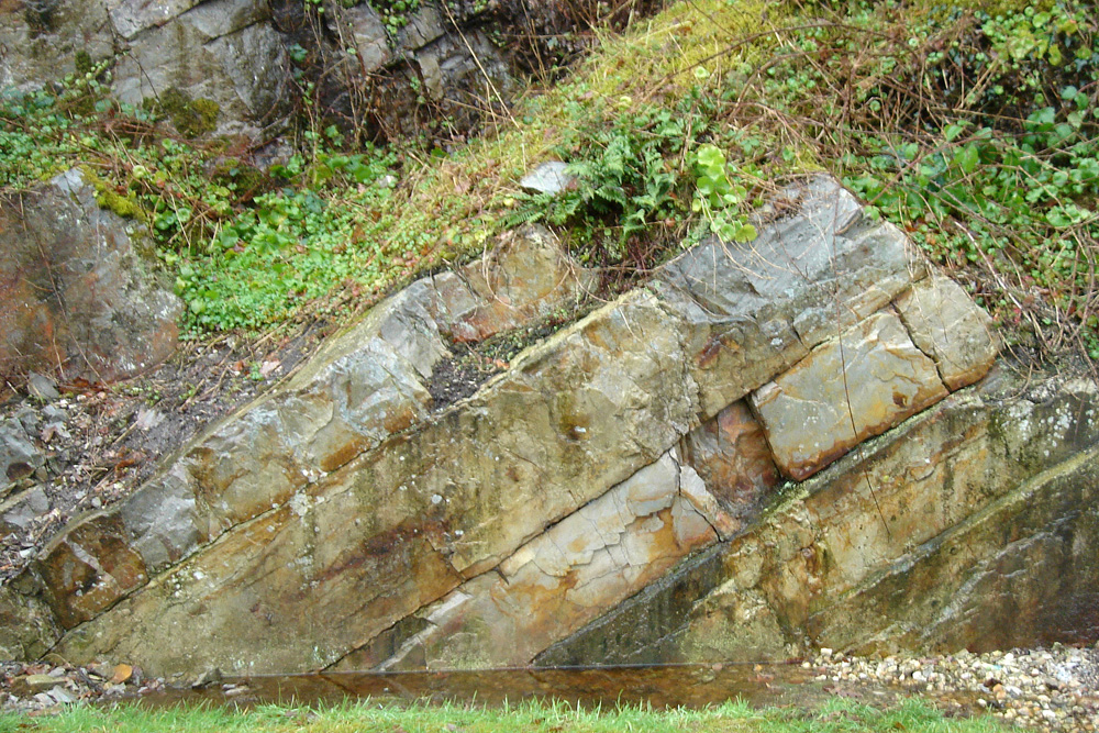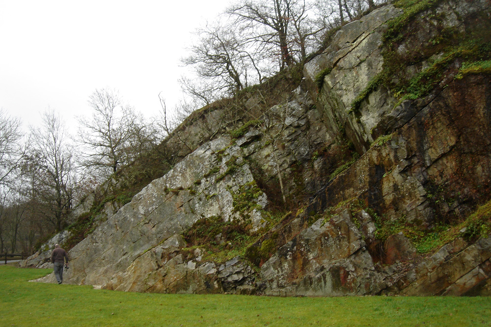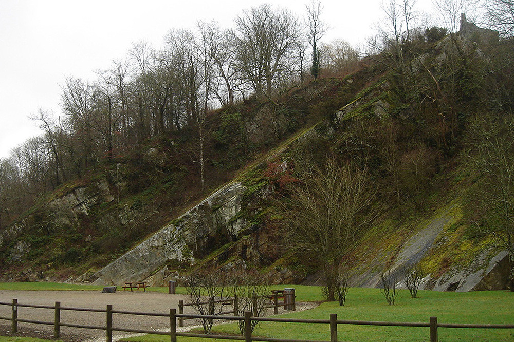 Affleurement de Grès armoricain, parking du « Pays d’Accueil d’Andaine et du Domfrontais »